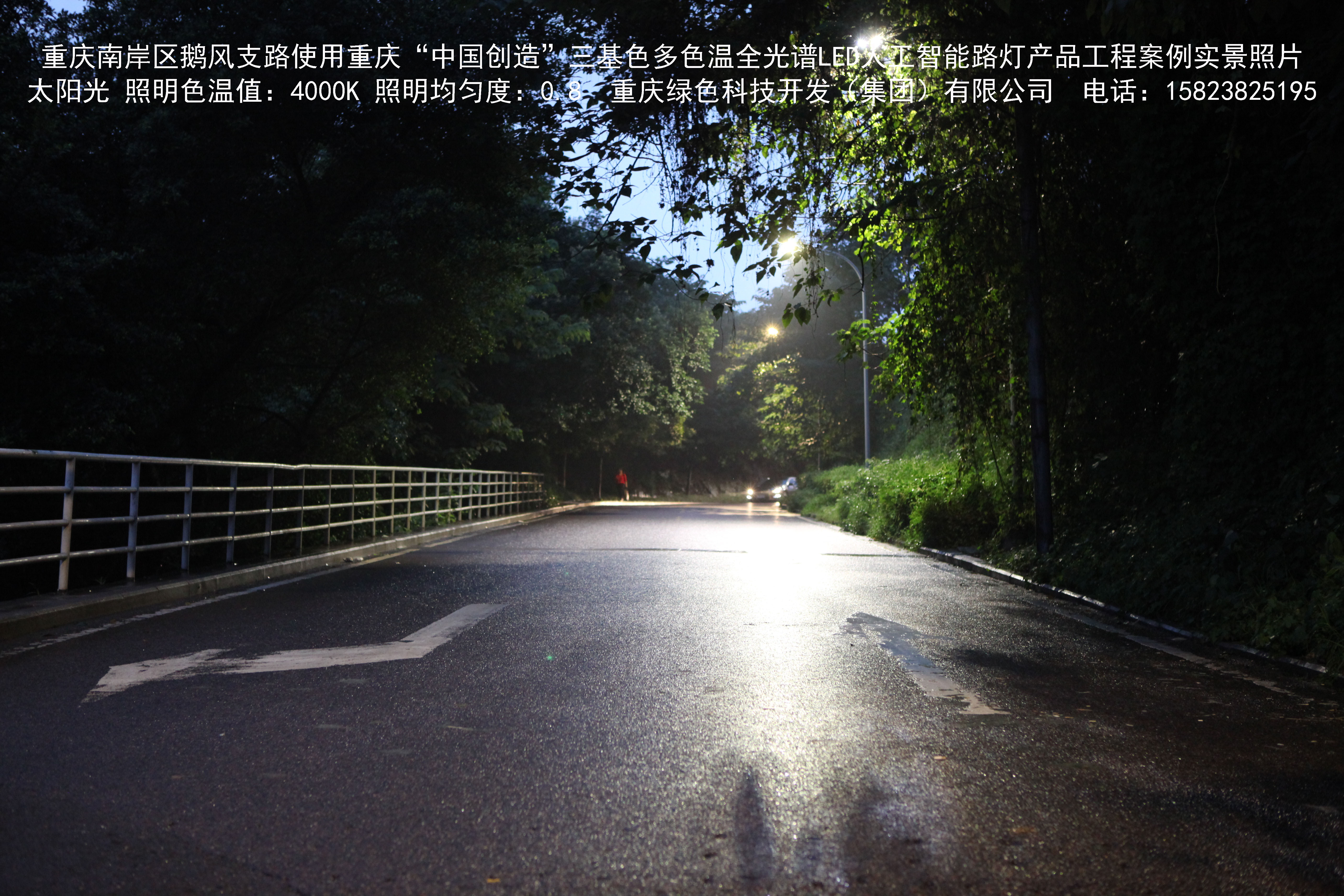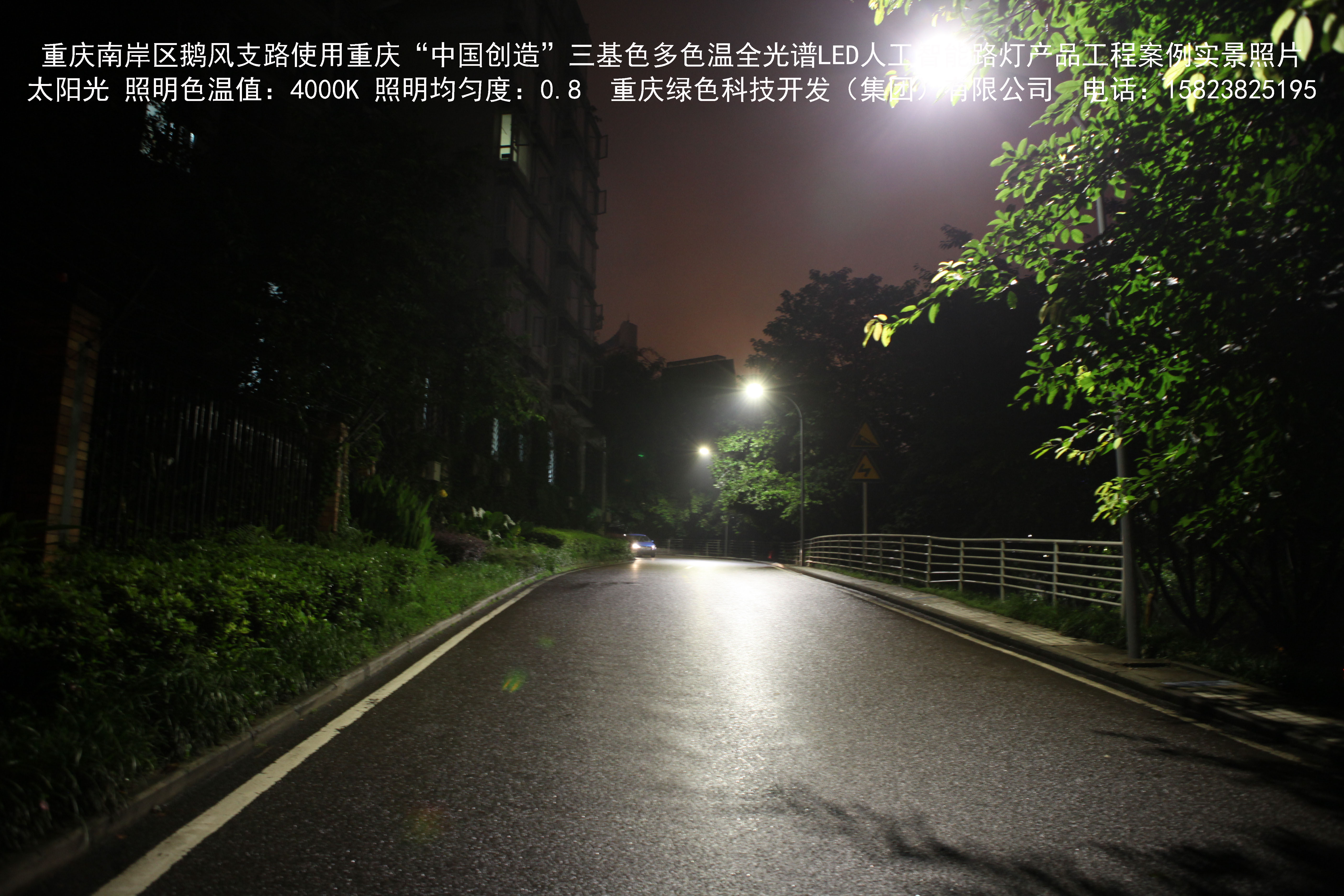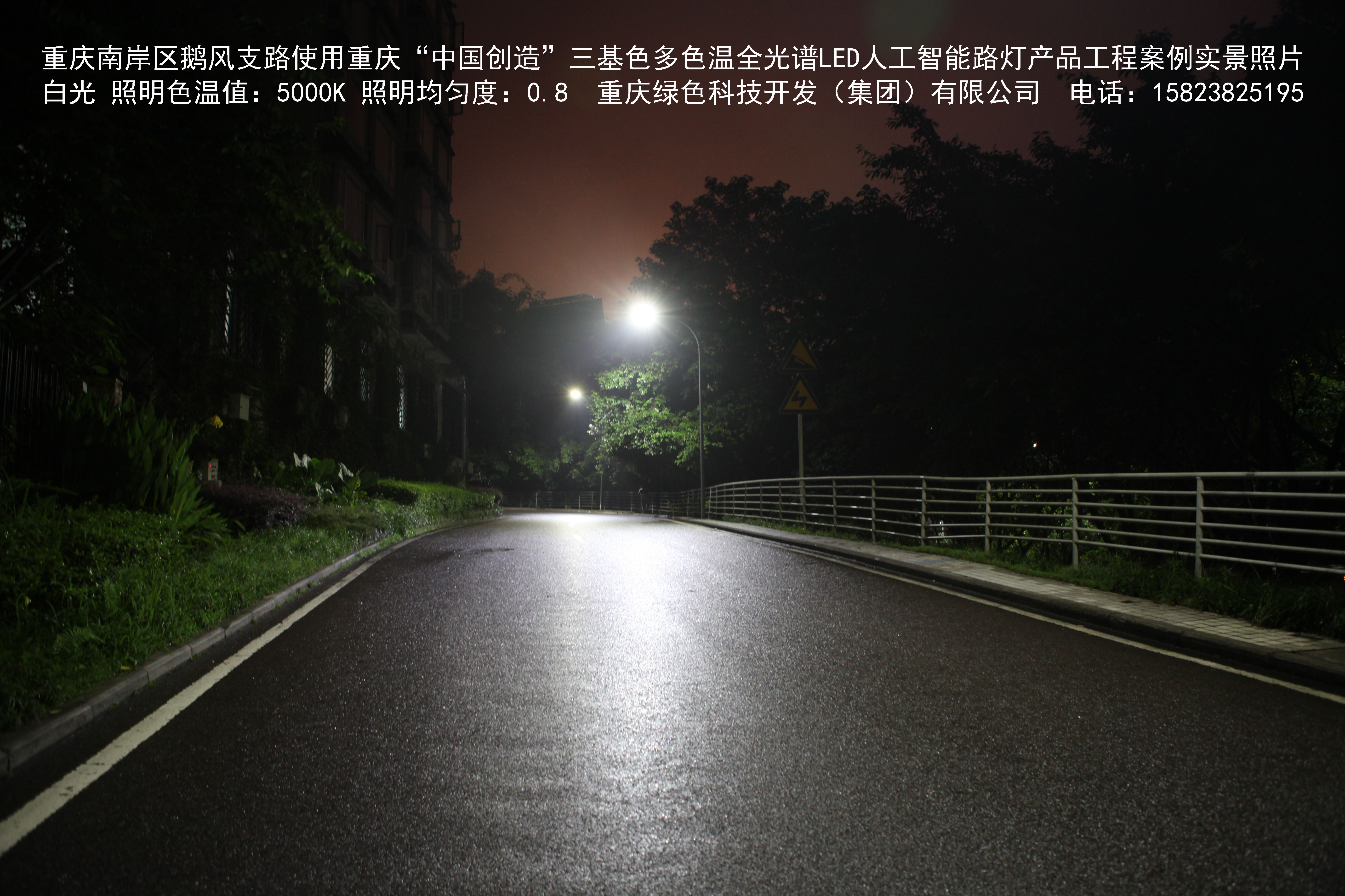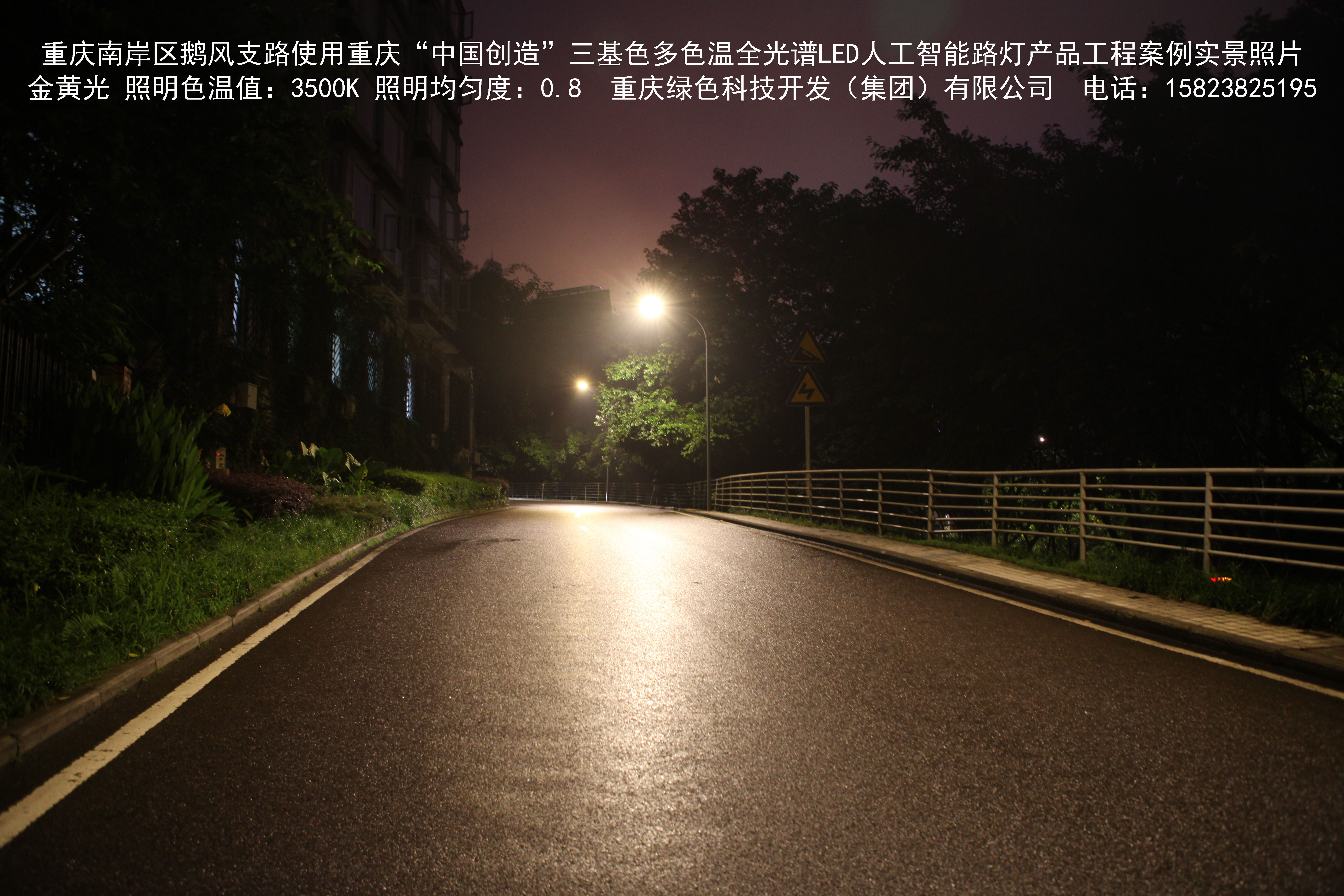 重慶市南岸區(qū)鵝風支路使用我司研造的重慶“中國創(chuàng)造”三基色多色溫全光譜LED人工智能路燈產(chǎn)品工程案例