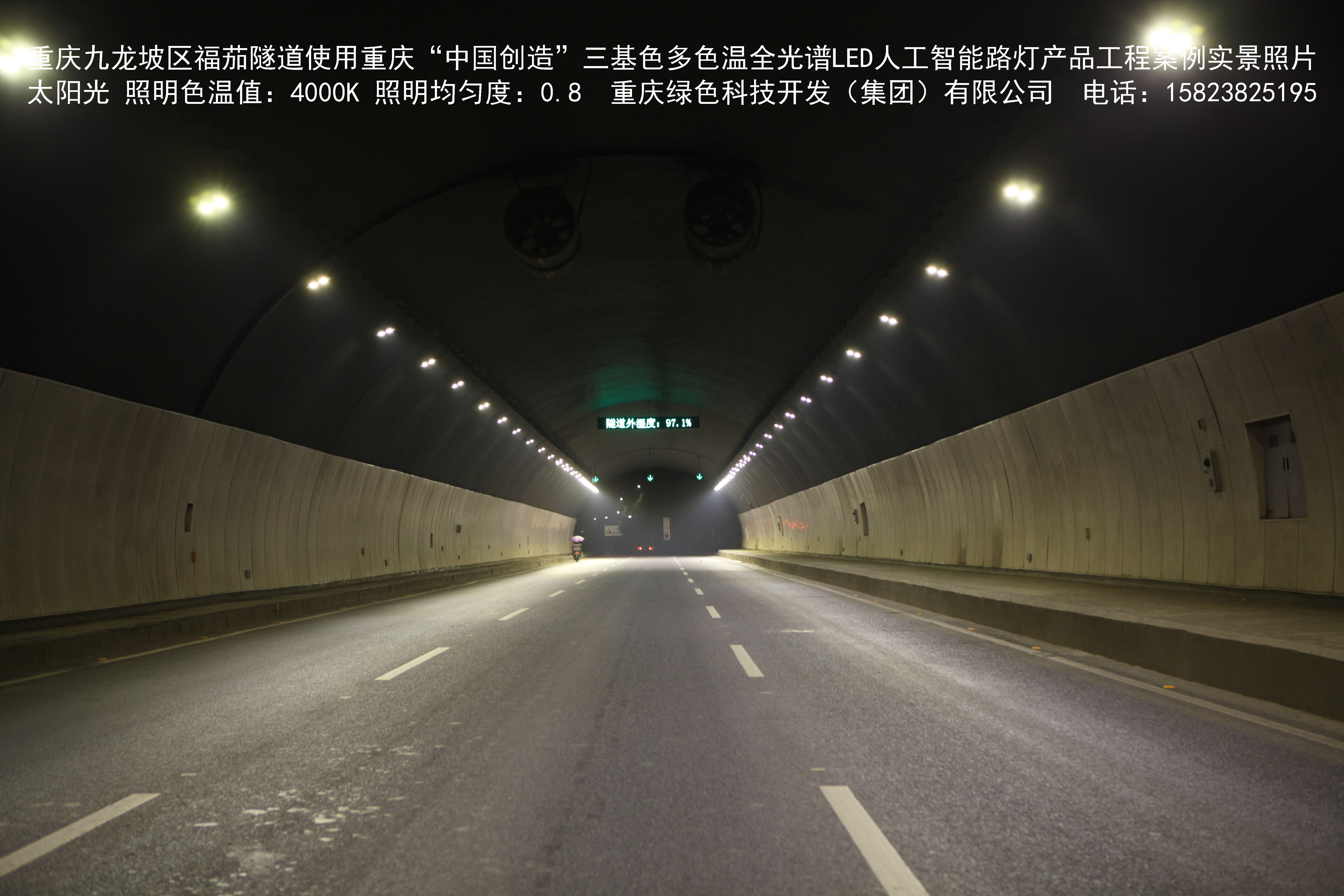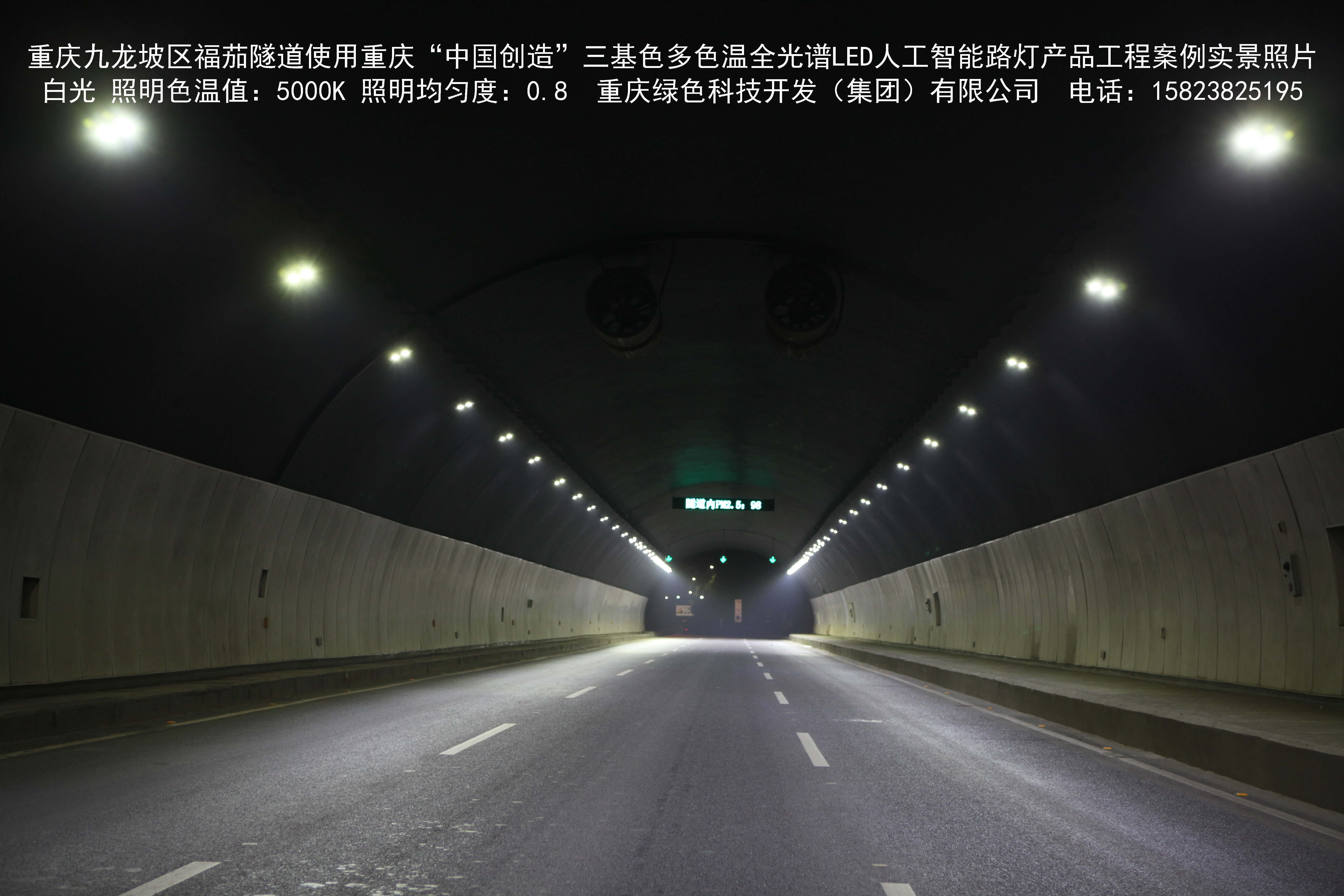 該產(chǎn)品已先后在重慶市渝中區(qū)濱江路洪崖洞沿線(魁星樓立交橋至湖廣會館立交橋)、菜袁路,合川全城區(qū),永川新城區(qū),渝中區(qū)龍家灣、黃沙溪、鵝嶺、袁家崗草坪、朝千隧道,南岸區(qū)茶園渣場路、風(fēng)臨路、鵝風(fēng)支路,江津區(qū)雙福園區(qū)津馬大道,銅梁區(qū)龍騰大道,九龍坡區(qū)石新路,石坪橋、陳家坪、福茄、九龍、五臺山、美茵河谷、二郎、袁家崗下穿隧道,沙坪壩區(qū)漢渝路下穿隧道,陸軍軍醫(yī)大學(xué)全校區(qū)道路,豐都縣迎賓大道,G50重慶渝涪高速公路全線收費站、服務(wù)區(qū)及鐵山坪、華山、黃草山、同心寨、廟堡隧道,G5013渝蓉高速全線收費站、服務(wù)區(qū),渝遂高速青木關(guān)隧道,寧夏回族自治區(qū)賀蘭縣全城區(qū)等百余處進行了大規(guī)模應(yīng)用,獲得了良好的社會效益。