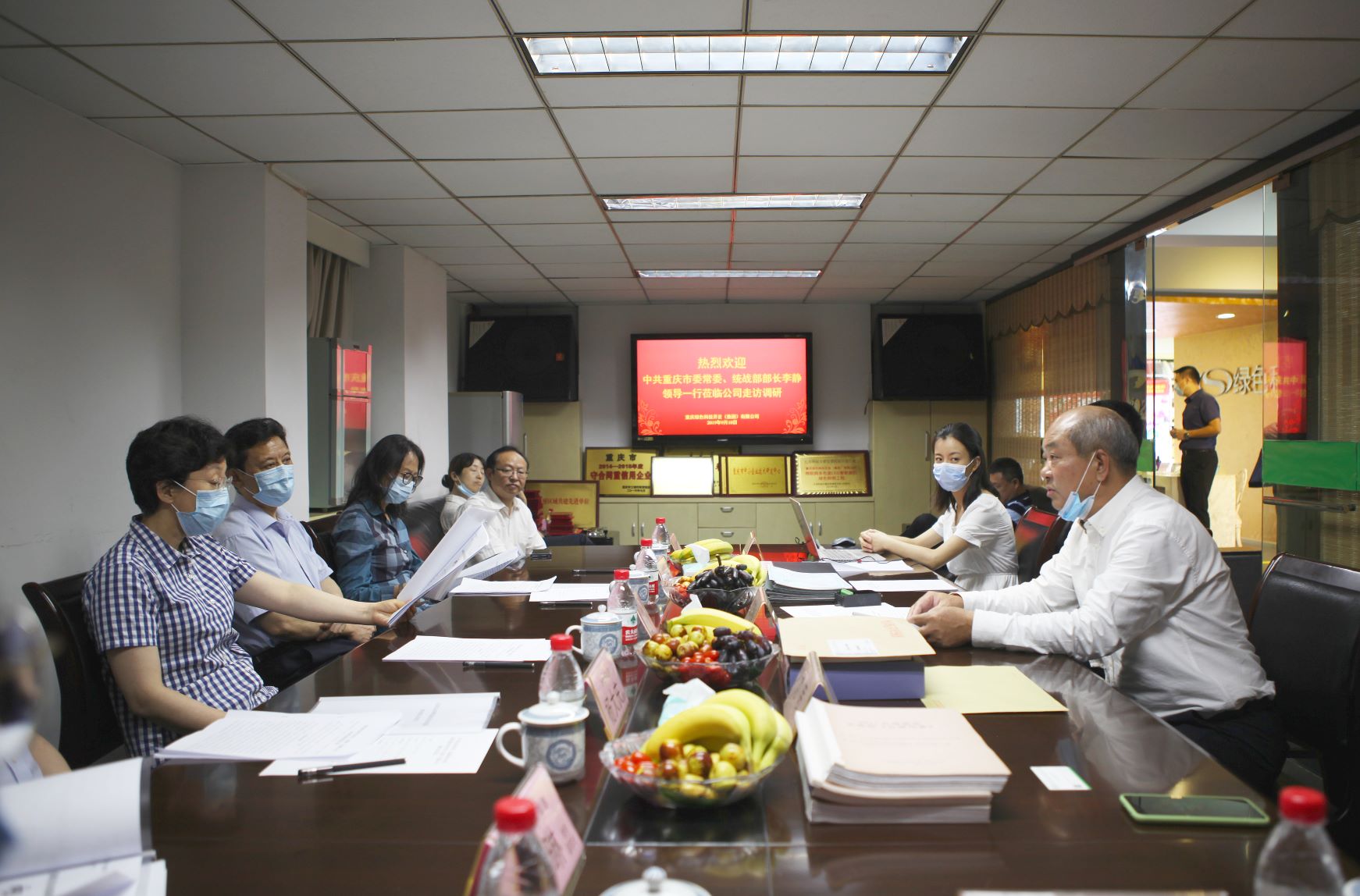 9月10日,中共重慶市委常委、統(tǒng)戰(zhàn)部部長李靜蒞臨重慶綠色科技開發(fā)(集團(tuán))有限公司走訪調(diào)研,中共重慶市委統(tǒng)戰(zhàn)部副部長、市僑聯(lián)黨組書記史全波,中共重慶市委統(tǒng)戰(zhàn)部副部長、市僑辦主任楊大慶,中共重慶市渝中區(qū)委常委、區(qū)統(tǒng)戰(zhàn)部部長章琳一同隨行。會(huì)上董事長鄧明鑒分別匯報(bào)了企業(yè)生產(chǎn)經(jīng)營、向貧困縣扶貧捐助及個(gè)人參政議政情況,李靜常委在聽取匯報(bào)后對(duì)公司利用自主知識(shí)產(chǎn)權(quán)研造的多色溫全光譜LED智能照明先進(jìn)技術(shù)表示贊賞,對(duì)鄧明鑒董事長認(rèn)真履行多項(xiàng)職務(wù)所做的工作,堅(jiān)持做好參政議政、捐助貧困縣,助力脫貧攻堅(jiān)、服務(wù)經(jīng)濟(jì)社會(huì)發(fā)展、協(xié)調(diào)各方化解社會(huì)矛盾,予以肯定。